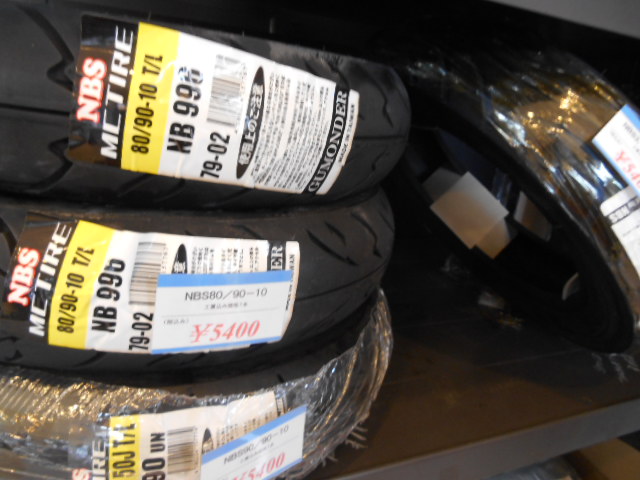 原付バイク タイヤ常時在庫あります!交換は予約となりますが原付代車もありますのでお気軽に持ってきてください!タイヤ交換金額はおおよそ1本コミコミ5400円ぐらいです!絶対にお安いと思います!
